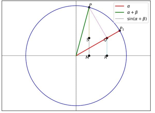 $\sin(\alpha + \beta)=MP=\sin\alpha\cos\beta+\cos\alpha\sin\beta$