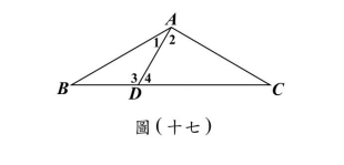 <非選擇題>如圖(十七),$\triangle ABC$中,$AB = AC$,$D$點在$BC$上,$\angle BAD = 30^\circ$,且$\angle ADC = 60^\circ$。請完整說明為何$AD = BD$與$CD = 2BD$的理由。