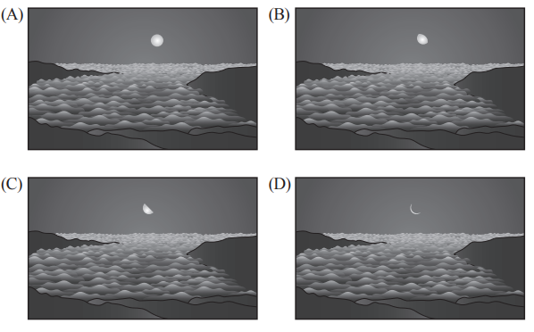快查考古題 > 105會考自然試題_39 Posted in 會考105自然 會考自然105會考自然試題_39 🤖 🔊 朗讀內容 正在生成語音... <單選題>某日天氣晴朗,小閑在阿里山上正準備觀看日出,在清晨日出前,發現此時月亮正好從東方地平線升起,便立即拍照留念。下列何者最有可能是當時拍下的月亮與雲海照片? 答案 (D) 清晨日出前月亮東升,月相為殘月(農曆24~29日),對應選項D的月相,選(D) 題目與答案 借題發想 加入最愛清單 加最愛