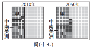快查考古題 > 106會考社會試題_45 Posted in 會考106社會 會考社會106會考社會試題_45 🤖 🔊 朗讀內容 正在生成語音... <單選題>圖(十七)為2010年及聯合國預測2050年時,亞洲、非洲、歐洲、北美洲、中南美洲各洲的人口占世界總人口的比例分布狀況。圖中五個區塊分別代表各洲,甲區塊應是指下列何者? (A)亞洲 (B)非洲 (C)歐洲 (D)北美洲 答案 (B) 2010年全球人口占比排序為亞洲>非洲>歐洲>北美洲>中南美洲,甲區塊占比第二,對應非洲。 題目與答案 借題發想 加入最愛清單 加最愛 相關試題114會考社會考題_19 會考社會 113會考社會試題_04 會考社會