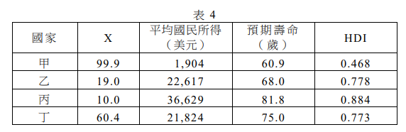 哇來找 > 106學測社會試題-67 Posted in 106學測社會 社會106學測社會試題-67經濟福祉 <單選題>67-68為題組 ◎ 表 4 為 2013 年法國、阿富汗、馬來西亞、俄羅斯四個國家的統計資料表。請問: 67. 計算人類發展指標(HDI)時,應當運用下列哪項資料? (A)人口粗出生率 (B)家用電腦普及率 (C)每百人擁有的病床數 (D)六歲以上兒童預期受教育的年數 答案 HDI由平均壽命、教育程度(預期受教育年數與平均受教育年數)、人均GNI三指標構成,反映國家綜合發展水平。 報錯 ChatGPT DeepSeek 試題內容 試題內容 選擇題答案 加入最愛清單 加最愛 相關試題110指考歷史考科-02 社會 105學測社會試題-71 社會 105學測社會試題-72 社會 107學測社會試題-64 社會 105學測社會試題-50 社會 114分科地理考科-26 社會