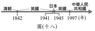 快查考古題 > 107會考社會試題_50 Posted in 會考107社會 會考社會107會考社會試題_50 🤖 🔊 朗讀內容 正在生成語音... <單選題>圖(十八)呈現的是某地不同時期統治者的演變情況,此地最可能是下列何者? (A)琉球 (B)香港 (C)澳門 (D)臺灣 答案 (B) 1842年香港被割讓給英國,1997年回歸中國大陸,統治者演變與圖示完全相符。 題目與答案 借題發想 加入最愛清單 加最愛