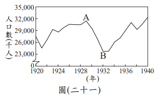 快查考古題 > 107會考社會試題_53 Posted in 會考107社會 會考社會107會考社會試題_53 🤖 🔊 朗讀內容 正在生成語音... <單選題>圖(二十一)是1920年至1940年美國「非農業就業人口數」的統計圖,其中由A至B的變化,主要與下列何者有關?(A)黑人奴隸獲得解放,投入工業生產 (B)政府施行福利政策,保障勞工生活 (C)國家投入大戰,青年至海外作戰 (D)銀行與工廠倒閉,社會經濟衰退 答案 (D) 1929年經濟大恐慌爆發,美國銀行、工廠紛紛倒閉,失業人口激增,非農業就業人口大幅下降,對應A至B的變化。 題目與答案 借題發想 加入最愛清單 加最愛 相關試題114會考社會考題_52 會考社會 114會考社會考題_53 會考社會 113會考社會試題_37 會考社會 111會考社會試題_41 會考社會 110會考社會試題_52 會考社會 105會考社會試題_59 會考社會