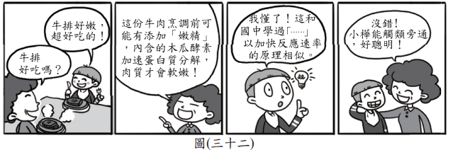 快查考古題 > 107會考自然試題_42 Posted in 會考107自然 會考自然107會考自然試題_42 🤖 🔊 朗讀內容 正在生成語音... <單選題>圖(三十二)為小樺與媽媽某一天在牛排館用餐的對話:小樺的敘述「……」最可能是下列何者? (A) 酸鹼中和實驗中會加入『酚酞』 (B) 製造肥皂實驗中會加入『氫氧化鈉』 (C) 製造乙酸乙酯實驗中會加入『濃硫酸』 (D) 碳酸鈣製造二氧化碳實驗中會加入『鹽酸』 答案 C 木瓜酵素是催化劑,濃硫酸在乙酸乙酯製備中作催化劑,其他選項為指示劑或反應物,選【C】。 題目與答案 借題發想 加入最愛清單 加最愛 相關試題106會考自然試題_07 會考自然 111會考自然試題-21 會考自然 106會考自然試題_53 會考自然 114會考自然考題_44 會考自然 109會考自然試題_53 會考自然
