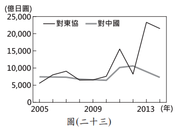 快查考古題 > 108會考社會試題_48 Posted in 會考108社會 會考社會108會考社會試題_48 🤖 🔊 朗讀內容 正在生成語音... <單選題>圖(二十三)為日本近年來對於中國和東協國家的投資金額統計,對兩者投資金額差距擴大與下列何者關係最為密切? (A)東南亞天災日益頻繁 (B)東協的生產成本較低 (C)中國實施全面開放二胎 (D)東協反日意識漸趨高漲 答案 (B) 2013年後日本對東協投資金額大幅超過中國,核心因東協勞力、土地等生產成本低於中國,符合企業追求低成本的經營邏輯;天災、二胎政策、反日意識與投資金額差距無直接關聯。 題目與答案 借題發想 加入最愛清單 加最愛 相關試題113會考社會試題_49 會考社會 113會考社會試題_50 會考社會 111會考社會試題_43 會考社會 106會考社會試題_56 會考社會 107會考社會試題_54 會考社會 109會考社會試題_45 會考社會