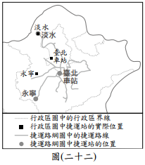 快查考古題 > 109會考社會試題_44 Posted in 會考109社會 會考社會109會考社會試題_44 🤖 🔊 朗讀內容 正在生成語音... <單選題>小明將臺北捷運路網圖與臺灣北部行政區圖以捷運淡水站為基準點套疊,顯示如圖(二十二)所示的現象:路網圖中各站位置與行政區圖中的實際位置並不一致。造成上述現象的原因最可能為下列何者? (A)路網圖為被簡化過的地圖 (B)路網圖的比例尺較行政區圖大 (C)路網圖涵蓋的範圍較行政區圖大 (D)路網圖繪製的時間較行政區圖早 答案 (B) 比例尺與地圖範圍成反比,捷運路網圖涵蓋範圍小,比例尺較大,導致與範圍大、比例尺小的行政區圖套疊時位置不一致。 題目與答案 借題發想 加入最愛清單 加最愛 相關試題113會考社會試題_40 會考社會 110會考社會試題_54 會考社會 111會考社會試題_42 會考社會 106會考社會試題_53 會考社會 107會考社會試題_54 會考社會 108會考社會試題_44 會考社會