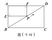 快查考古題 > 112會考數學考題_23 Posted in 會考112數學 會考數學112會考數學考題_23 🤖 🔊 朗讀內容 正在生成語音... <單選題>如圖(十四),矩形 $ABCD$中,$AB= 6$,$AD= 8$,且有一點 $P$從 $B$點沿著 $BD$往 $D$點移動。若過 $P$點作 $AB$的垂線交 $AB$於 $E$點,過 $P$點作 $AD$的垂線交 $AD$於 $F$點,則 $EF$的長度最小為多少? (A) $\dfrac{15}{4}$ (B) $\dfrac{25}{4}$ (C) $5$ (D) $7$ 答案 B 題目與答案 借題發想 加入最愛清單 加最愛 相關試題112會考數學考題_12 會考數學 112會考數學考題_10 會考數學 110會考數學考題_11 會考數學 111會考數學考題_09 會考數學 110會考數學考題_14 會考數學 110會考數學考題_26 會考數學