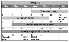 Note: Amy’s schedule: Aug.1-5 Summer camp; Aug.16-25 Family trip to the South