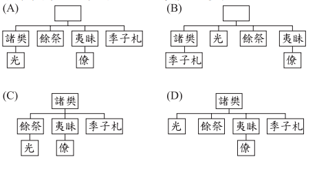 公子光之父曰吳王 諸樊。諸樊弟三人:次曰餘祭,次曰夷昧,次曰季子札。諸樊知季子札賢而不立太子,以次傳三弟,欲卒致國於季子札。諸樊既死,傳餘祭。餘祭死,傳夷昧。夷昧死,當傳季子札。季子札逃不肯立,吳人乃立夷昧之子僚為王。公子光曰:「使以兄弟次邪,季子當立;必以子乎,則光真嫡嗣,當立。」