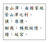 甲:壹山澤,則惡農、慢惰、俗欲之民無所於食;無所於食則必農,農則草必墾矣。貴酒肉之價,重其租,令十倍其樸;然則商賈少,農不能喜酣奭,大臣不為荒飽。商賈少,則上不費粟;民不能善酣奭,則農不慢;大臣不荒,則國事不稽,主無過舉。(《商君書》)