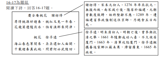 16. 下列關於謝、徐二人詩中「桃花源」的敘述,正確的選項是:
