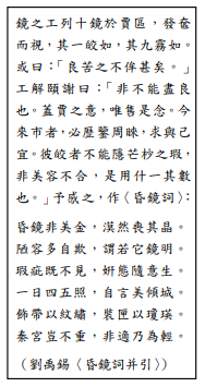 (A)與〈始得西山宴遊記〉中「不與培塿為類」相近,〈昏鏡詞〉亦運用藉物寫人手法,並隱有嘲諷之意