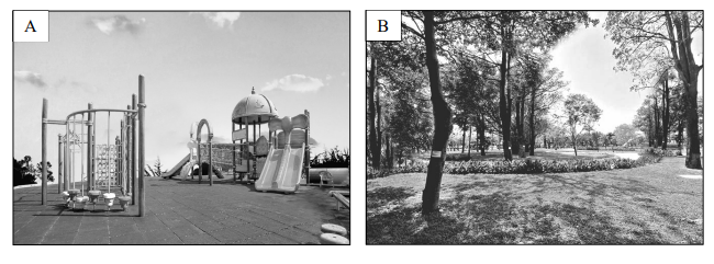 提示︰不同的公園,可能樣貌不同,特色也不同。請以此為主題,並依據下列兩張圖片的內容,寫 一篇英文作文,文分兩段。第一段描述圖 A 和圖 B 中的公園各有何特色,第二段則說明你 心目中理想公園的樣貌與特色,並解釋你的理由。