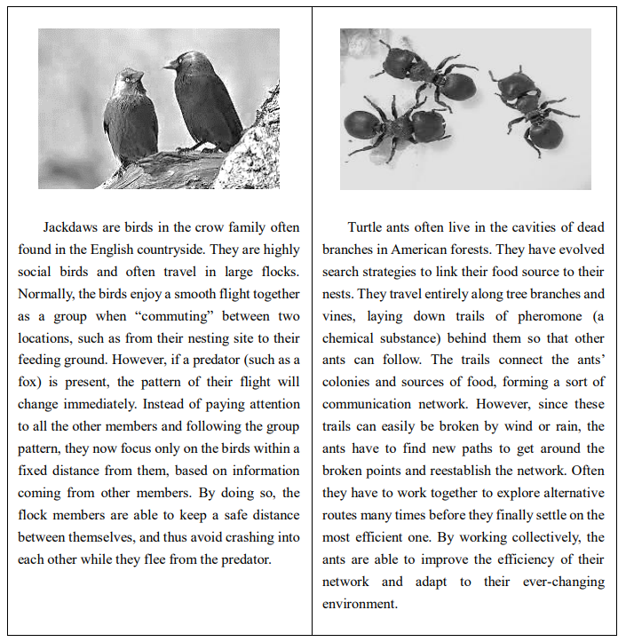 Studies show that animals like jackdaws and turtle ants are able to use ___47___ intelligence in both solving problems and ___48___ to new challenging environment.