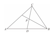 在 \(\triangle ABC\) 中,\(\overline{AB} = 6\),\(\overline{AC} = 5\),\(\overline{BC} = 4\)。令 \(\overline{AB}\) 中點為 \(D\),\(P\) 為 \(\angle ABC\) 之角平分線與 \(\overline{CD}\) 之交點,如右圖所示。試選出正確的選項。