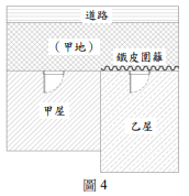 雙方因積怨甚深,小華惡意在甲地搭起鐵皮圍籬(參見圖4),目的在阻擋乙屋的對外通行。小明乃告上法院要求小華拆除,後來法院判決小明勝訴。請問: