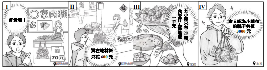圖2依序為小華去超級市場買材料,回家包粽子給家人吃的過程。請問: