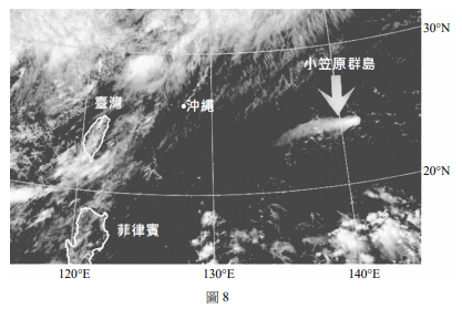 [題組:第33-34題]2021 年 8 月日本小笠原群島火山噴發,我國為掌握火山噴發出浮石的漂流動態,隨即進行洋流數值模擬,推估浮石大約在 10 月中旬接近沖繩,11 月中下旬接近臺東沿岸、菲律賓北部島嶼等地。11 月底,海巡署通報在屏東興海、旭海及臺東綠島等岸邊發現疑似浮石。截至12 月 7 日,發現浮石已隨著洋流漂流到花蓮七星潭,三貂角,富貴角,及桃園大堀溪南岸等處。圖 8 為小笠原群島與臺灣位置圖。請問:文中火山位於太平洋板塊與下列哪個板塊的交界帶上?