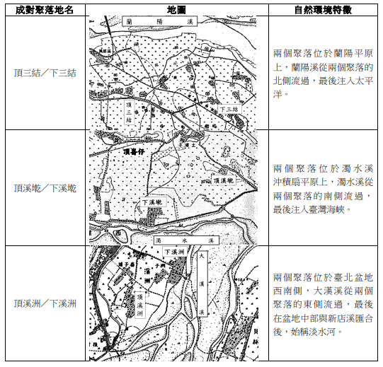 [題組:第38-40題]下列是某生嘗試探究臺灣聚落名稱意涵的步驟:步驟 1:透過 1921 年臺灣地形圖,整理今宜蘭縣五結鄉的「頂三結/下三結」、彰化縣竹塘鄉的「頂溪乾/下溪乾」,新北市板橋區的「頂溪洲/下溪洲」等三組成對聚落地名,並蒐集這三組聚落附近的圖資,判讀各地區自然環境特徵。
