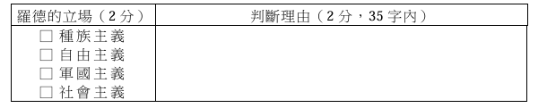 【題組50-51】英人塞西爾·羅德曾任英國在開普敦殖民地的總理,其「不列顛南非公司」曾控制今日的辛巴威和尚比亞。資料一:羅德堅信:我們是世界上最優秀的種族,在世界上居住區域越廣,對人類就越有好處。想想,目前世界上被那些最可鄙的種族占住之地,如果我們將之置於英國的影響之下,會帶來多大的改變?再看看,那些新納入我們領域的國家,產生了多少工作機會。資料二:一位史家評述:羅德的地位如同華盛頓或林肯之於美國,十九世紀末的南非歷史,大部分是由其書寫。資料三:2015年,南非開普敦大學有一場名為「羅德必須倒下」的抗議行動,要求移除校內的羅德雕像。請問:根據題文,資料三的抗議行動,最可能是批判羅德的何種立場?請在答題卷勾選一個正確選項,並說明判斷理由。