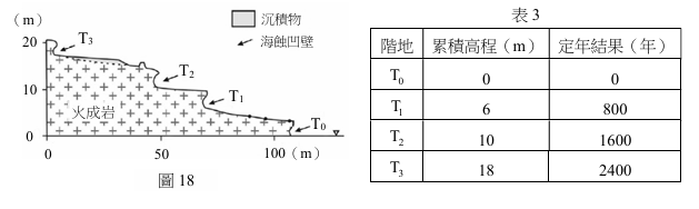 (C)碳-14之半衰期約為5730年,此定年方式適用於時間尺度十萬年以上事件之探討