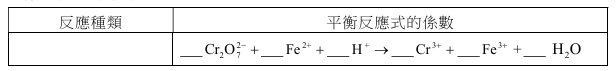含有Cr(VI)的化合物,如鉻酸根離子($CrO_4^{2-}$),簡稱六價鉻。生活用品的製程中常 產生六價鉻,成為影響水源的污染物。美國國家環境保護署(U.S. EPA)與世界衛生組 織(WHO),分別建議飲用水的鉻含量不可高於100 ppb與50 ppb($10^{-9}$ ,即十億分之 一)。如何有效移除水中六價鉻,一直是科學家試圖解決的課題。受到海綿的多孔結構 可以吸水的啟發,科學家以具有多孔結構的有機金屬骨架(簡稱MOF),吸附水中的六 價鉻。MOF材料除了能移除水中六價鉻外,亦可在酸性水溶液中,經照光將六價鉻轉變 成毒性較低的三價鉻(Cr(III))化合物,並將材料再生使用。