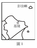 臺灣北部對「西北颱」特別敏感,因其常帶來嚴重的災害。「西北颱」係指颱風從臺灣東方海面向西北方行進,中心通過基隆與彭佳嶼之間的海面(如圖 1)。下列選項,哪些最有可能是颱風經過前後在基隆及彭佳嶼測得的風向?(應選 2 項)