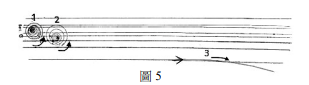 氣泡室是裝滿液態氫的特殊容器,其內部具有均勻磁場。當帶電粒子穿過氣泡室時,沿著粒子軌跡會產生小氣泡,是一種能用來追蹤粒子動向的工具。圖5 是不同的帶電粒子由左至右垂直射入氣泡室所產生的軌跡(磁場垂直進入紙面),分別以1、2、3 編號標示,而帶電粒子因與氣泡室內的液態氫作用而損失能量,軌跡呈螺旋形,其中粒子1、2 進行逆時針旋轉、粒子3 則為順時針旋轉。下列敘述何者正確?(以 \( \frac{mv}{q} \) 表示編號i 的粒子其動量除以電量的量值)