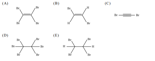 17 一反應瓶含有乙烷、乙烯和乙炔,在室溫未照光條件下進行溴化反應後,下列哪些化合物是可能得到的產物?
