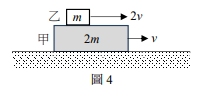 當腳踏車在水平地面上以4.0m/s等速度前進時,因緊急煞車以致兩車輪瞬間被鎖死,則此腳踏車在完全停止之前,最多還會再前進多少距離?(4分)