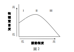 (A)這個生態系中,環境的低度擾動程度(I)最有利於維護當地的物種多樣性