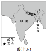 Posted in 會考109社會 會考社會109會考社會試題_32 圖(十五)顯示2011年9月18日發生的強烈地震震央位置,除了建築物倒塌造成的人員傷亡外,由於某些因素影響使得搜救工作不易進行,導致死傷人數持續攀升。根據當地地形、氣候等環境條件判斷,造成上文中搜救困難的因素最可能為下列何者? (A)山區冰河快速消融以致山洪暴發 (B)正值沙塵暴盛行時節,能見度低 (C)引發大規模海嘯,海水淹沒災區 (D)連日降雨,造成土石流掩埋道路 [單選題] 答案 (D) 題目與答案 加入最愛清單 加最愛