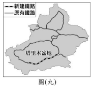 中國某行政區有一新建鐵路於2022年6月通車,與原有鐵路部分路線共同構成一環形鐵路,其路線圖如圖(九)所示(位於塔里木盆地)。該新建鐵路通車後為了維持其正常運行,根據沿線環境特色判斷,最可能需要進行下列何種維護措施?Image