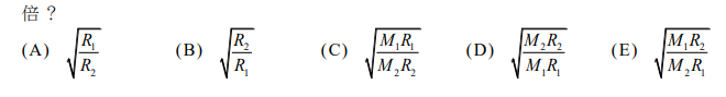 已知地球(E)與火星(M)的平均半徑比值 \(\frac{R_E}{R_M}\) 約為1.86,質量比值 \(\frac{m_E}{m_M}\) 約為9.3,試問同一物體在火星表面所受重力約為在地球表面所受重力的多少倍?