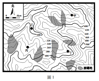 2021年春季臺灣水情吃緊,各縣市水庫蓄水量成為社會關注焦點。水庫有多種形式,若根據水庫與河流的位置關係,可分為「在槽水庫」與「離槽水庫」,前者是指水庫位於主流河道上;後者指水庫的主要水源自鄰近河道上興建水壩或攜河堰經重力輸水而來。例如,曾文水庫位在曾文溪主流,而烏山頭水庫則是透過隧道自曾文溪越坡引水。圖12顯示新竹苗栗地區的河流流域範圍(白色實線與虛線分別代表主流域與次流域)、主要河道與水庫(深黑色)的分佈;頭前溪有上坪溪與油羅溪兩大源流,峨眉溪則為中港溪的支流;甲、乙兩水庫是離槽水庫。圖13為圖12的局部放大,圖中的十字標「+」在二幅圖內的相對位置皆相同。請問: