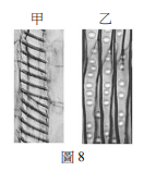 附圖為利用顯微鏡所觀察到的甲、乙兩種植物木質部組織。
