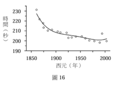 【第37-39題組】媽媽去購物商場買烤全雞。與高產肉雞類似的純種賽馬選育計畫顯示,自 1949 年以前的 50~100 年間獲得相當的秒數進展(以跑快者為勝),但 1950 以後則效果不佳(圖 16)。下列何者可能是效果不如預期的最合理推測?