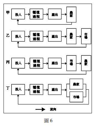 【題組47-50】某部小說寫道:某彭姓長工偕同妻兒及童養媳燈妹,前往番仔林墾殖。燈妹原是棄嬰,被收養後再轉賣給彭家,預備長大後和彭家兒子拜堂為夫妻。番仔林是原住民族生活空間,漢人進入採集山產或墾殖常遭原住民激烈抵抗。彭家人墾前三年,政府在該地區設撫墾區、番學堂,並布置隘寮僱請隘勇守衛,但仍時有原、漢衝突。彭家進入番仔林後,一家大小在草寮住處周圍的緩坡地伐除茅草和雜木,除林後的緩坡地,首先撿除較大石塊、栽種甘諸,然後在部分山泉較充足的地方,逐步將「甘諸田澗平,築成梯田,引水灌溉種植水稻。」漸漸在番仔林建立起新的家園。請問:題文中「甘諸田……水稻」內容,若以農業系統圖的方式呈現,最可能屬於系統中的哪個步驟?